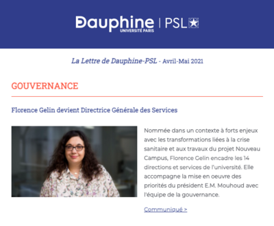 Retrouvez toute l'actualité de l'université et de la communauté dauphinoise dans la newsletter d'avril-mai 2021