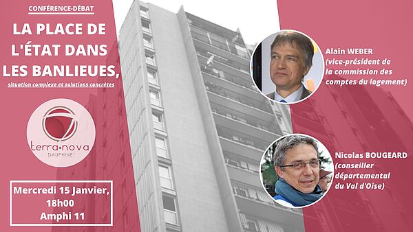 "Terra Nova Dauphine vous invite à sa première conférence de l'année autour de "La Place de l'Etat dans les Banlieues".