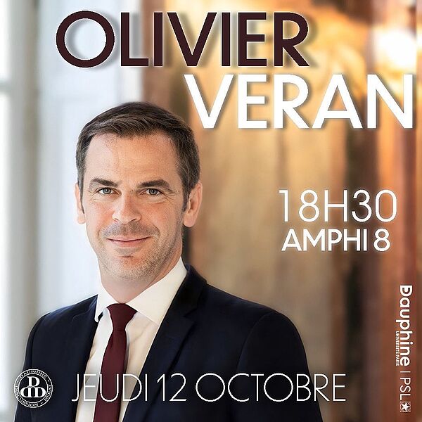 Pour son traditionnel débat de rentrée, l'association Dauphine Discussion Débat (DDD) reçoit Olivier Véran, ancien ministre de la santé, porte parole du gouvernement et ministre délégué chargé du renouveau démocratique, jeudi 12 octobre à 18h à l'Université Paris Dauphine - PSL (Amphi 8 - Edgar Faure).