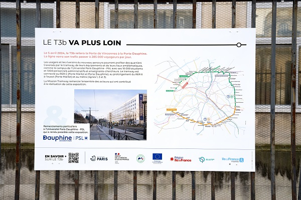 La Mission Tramway et l'Université Paris Dauphine - PSL vous proposent, à cette occasion, de revenir sur la genèse d'un chantier d'envergure à travers 23 panneaux installés sur les grilles du campus, jusqu'au 15 avril.