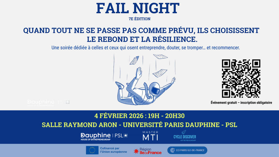 Parce que les parcours entrepreneuriaux ne sont jamais linéaires, la Fail Night revient pour sa 7ᵉ édition à l’Université Paris Dauphine – PSL.
