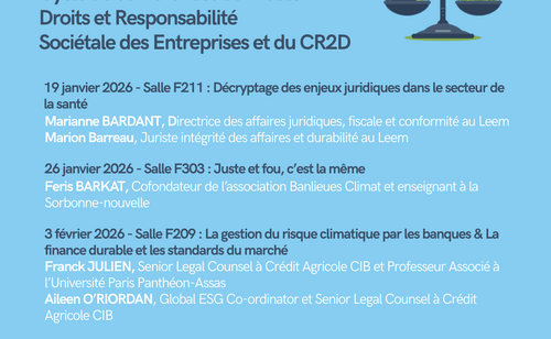 - 19/01/2026Cycle de conférences : Les mardis du Master Droits et RSE