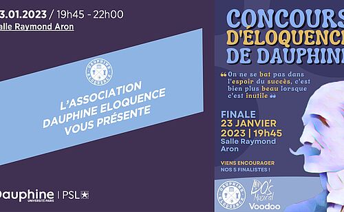 Cet événement est la finale du programme de Formation Eloquence du Bégaiement organisé par l'association Eloquence de la Différence, en partenariat avec l'Université Paris Dauphine - PSL et avec le soutien de l'association étudiante Dauphine Solidarité Handicap (DSH), l'Association Parole-Bégaiement, la Fondation Engagement Médias pour les Jeunes et Microsoft.