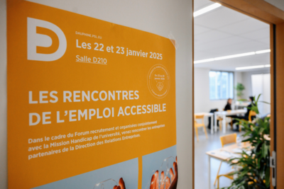 Pour sa 5ème édition, ont eu lieu les Rencontres de l’Emploi Accessible, organisées avec la Mission Handicap de l’université. La priorité de cette rencontre est de proposer un cadre bienveillant et convivial aux étudiants L3, M1 et M2, en situation de handicap. 14 entreprises partenaires se sont inscrites, 61 rendez-vous honorés avec 21 étudiants !