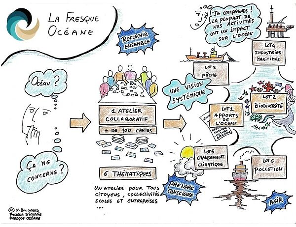 L'atelier de la Fresque Océane sensibilise aux enjeux liés à l'océan et aux impacts de nos activités sur cet écosystème.