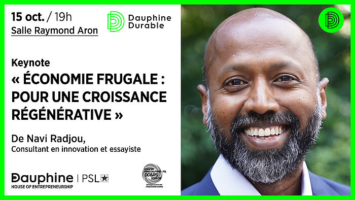 Dans le cadre des Rendez-vous Dauphine Durable, la House of Entrepreneurship organise une conférence avec Navi Radjou, auteur et expert internationalement reconnu en innovation et stratégie. Cette keynote, organisée pour la première fois à Dauphine, s’inscrit dans une dynamique de réflexion interdisciplinaire sur les transformations économiques contemporaines.