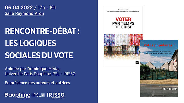 Une rencontre-débat est organisée sur les fondamentaux sociaux des choix électoraux. Le débat s'appuiera sur les résultats de deux enquêtes de sciences sociales synthétisés dans deux ouvrages parus récemment, Voter par temps de crise coordonné par Eric Agrikoliansky, Philippe Aldrin et Sandrine Lévêque et Votes populaires ! du collectif Focale.