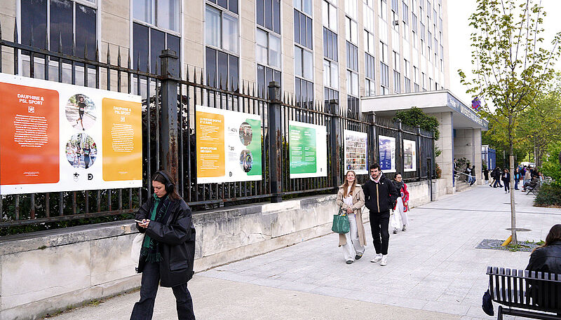 Installée sur les grilles de l’établissement, l’exposition reflète la place majeure accordée au sport à l’Université Paris Dauphine-PSL. L'exposition se décline également en version digitale sur le site web de l'université.