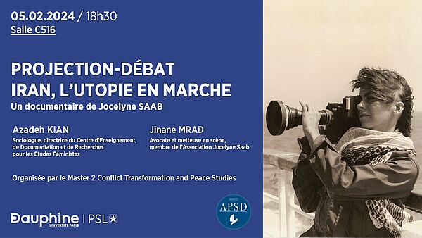 L’Association Peace Studies Dauphine organise une projection du documentaire Iran l’utopie en marche, réalisé par Jocelyne Saab en 1980.