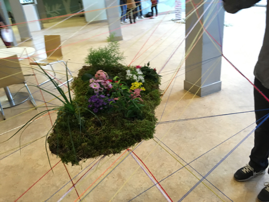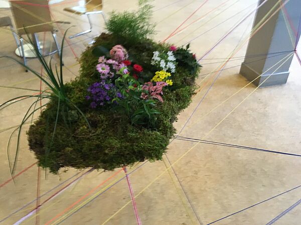 Mousse, plantes, fils matériaux divers. Taille variable.