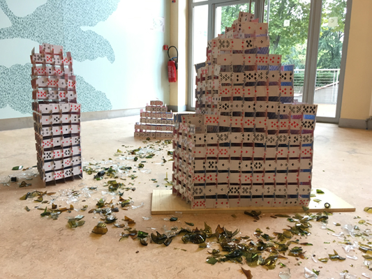 Cartes à jouer, tesson de verre. 1,90 x 3 x 3 m.