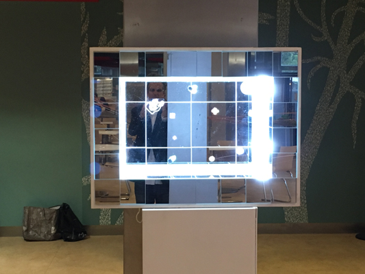 Bois, miroirs, LED. 83 x 63 x 33 cm.