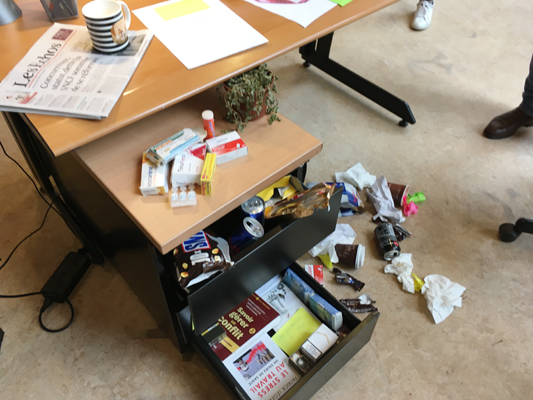 Le workshop s'est déroulé du 5 au 8 septembre. Deux salles de cours standard étaient attribuées au workshop, et se sont transformées en ateliers de production !