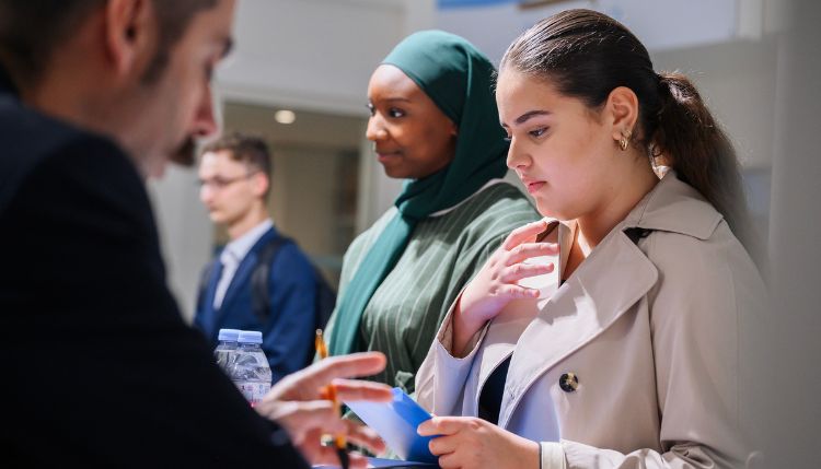 Chaque année, le Forum Alternance rassemble un grand nombre d'entreprises et d'étudiantes et étudiants dauphinois admis dans des filières en alternance. Le format hybride du forum 2024 permet d'allier rencontres en présentiel sur le campus de l'Université Paris Dauphine - PSL et rendez-vous virtuels via la plateforme Seekube.