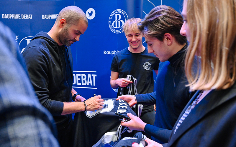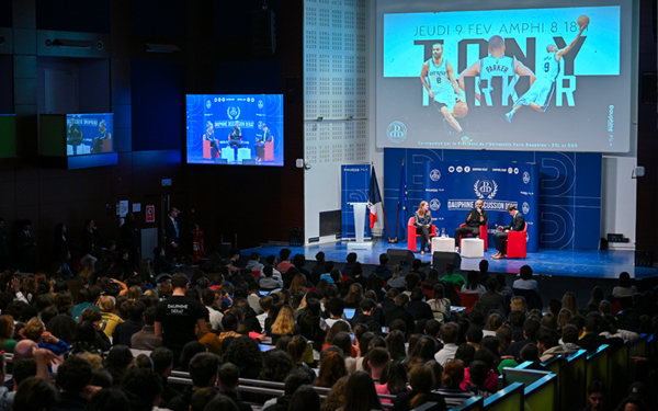 Le Président de l’université, E. M. Mouhoud, et l’association Dauphine Discussion Débat (DDD), ont reçu Tony Parker, quadruple champion NBA, le 9 février à l’Université Paris Dauphine - PSL pour échanger autour du projet de bachelor Sport Management avec la Tony Parker Academy Saint-Ouen – L’Île-Saint-Denis en 2025.