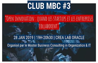 de 19h00 à 20h30Club MBC #3 "Open Innovation : Quand les startups et les entreprises collaborent"