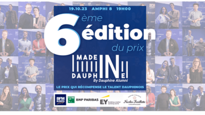 de 19h00 à 22h006e Cérémonie de remise des Prix Made In Dauphine (Dauphine Alumni)