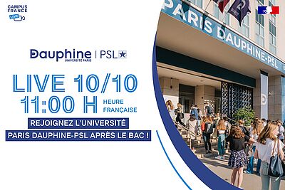 Lundi 10 octobre, l'Université Paris Dauphine - PSL sera en direct sur la plateforme Campus France pour présenter ses formations post-bac.