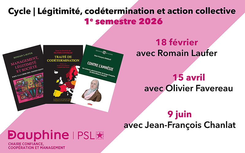 La chaire Confiance, Coopération et Management de Dauphine organise 3 tables rondes au 1er semestre 2026, autour de trois ouvrages récents.
