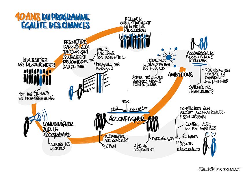 Depuis 2009, le programme Égalité des chances, soutenu par la Fondation Dauphine vise à promouvoir une diversité sociale et géographique des étudiantes et étudiants intégrant l’Université Paris Dauphine - PSL.