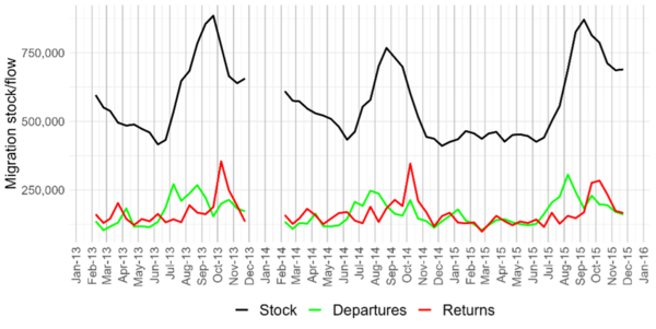 Graphique 2. Calendrier des migrations temporaires sur la période 2013-2015