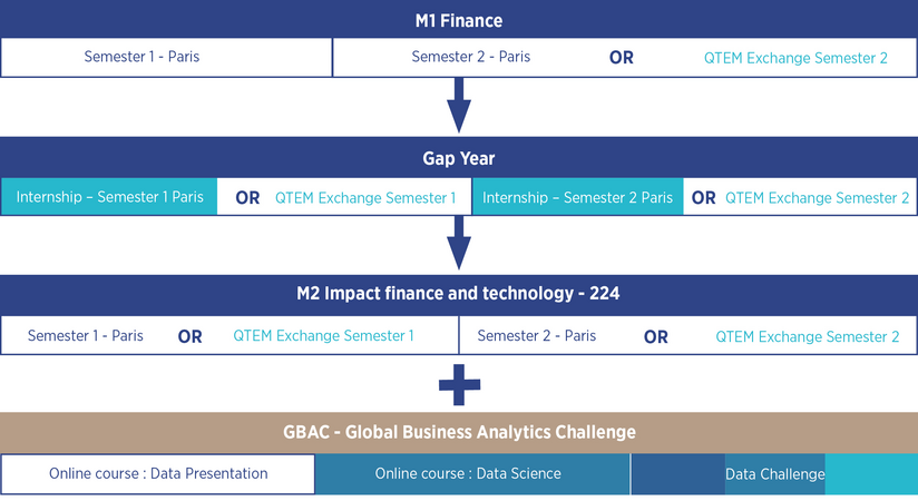 Following the QTEM track during the M1 Finance or during a gap year after the M1 is considered an advantage for admission into the Master Impact Finance and Technology - 224 program. For candidates that did not have that opportunity before joining the Master, it is possible to follow the QTEM track during semester 2.