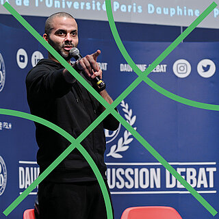 En 2023, le Président de l’université, E.M. Mouhoud, reçoit avec l’association étudiante Dauphine Discussion Débat (DDD), Tony Parker, quadruple champion NBA, pour échanger autour de la création d’un Bachelor Sport et Management.