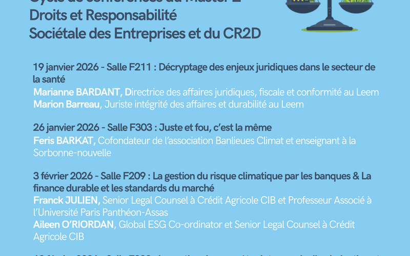 Cycle de conférences : Les mardis du Master Droits et RSE