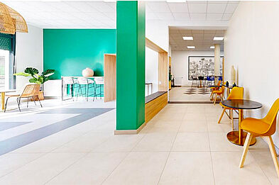 Services disponibles dans la résidence : laverie, espace lounge, espace de travail, local à vélo